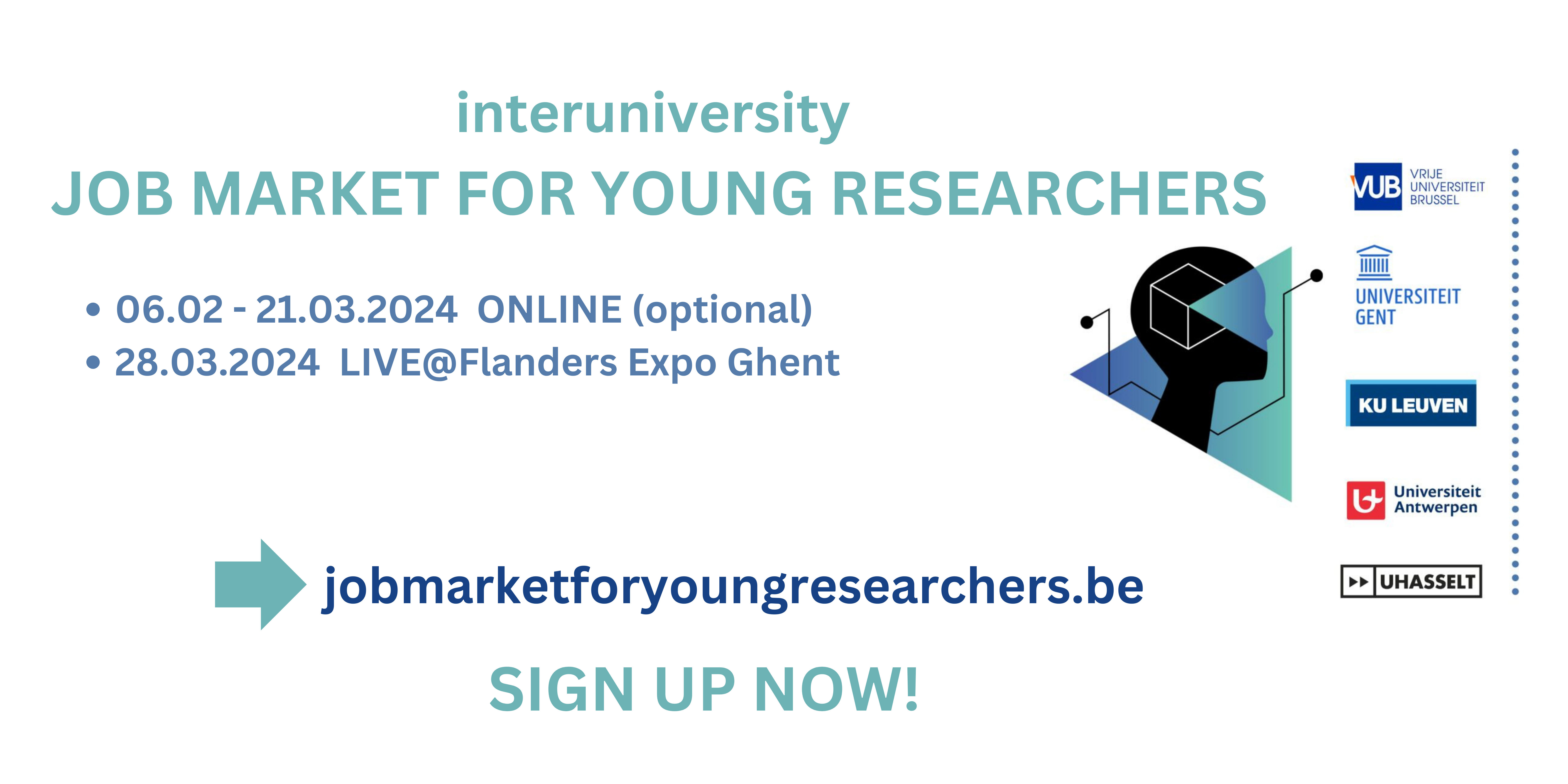 For several years now, Ghent University, KU Leuven, VUB, the University of Antwerp and UHasselt have been joining forces to improve the speed and quality of the transfer of PhD holders to the non-academic labour market. The Job Market for Young Researchers is their annual flagship event connecting PhD candidates and postdocs, who are keen to enter the labour market, and companies/organisations who are looking for the next generation of innovative and creative thinkers.