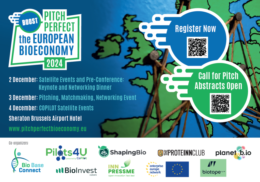 The ‘Pitch Perfect and Boost the European Bioeconomy’ event is a two day event of intense cross-border and cross-sectoral pitching, matchmaking and networking, with the aim to link industry to innovative (biobased) technologies, innovators to investors and to create new partnerships for the future and the further development of innovative, cross-border and cross-sectoral industrial value chains in the biobased economy.