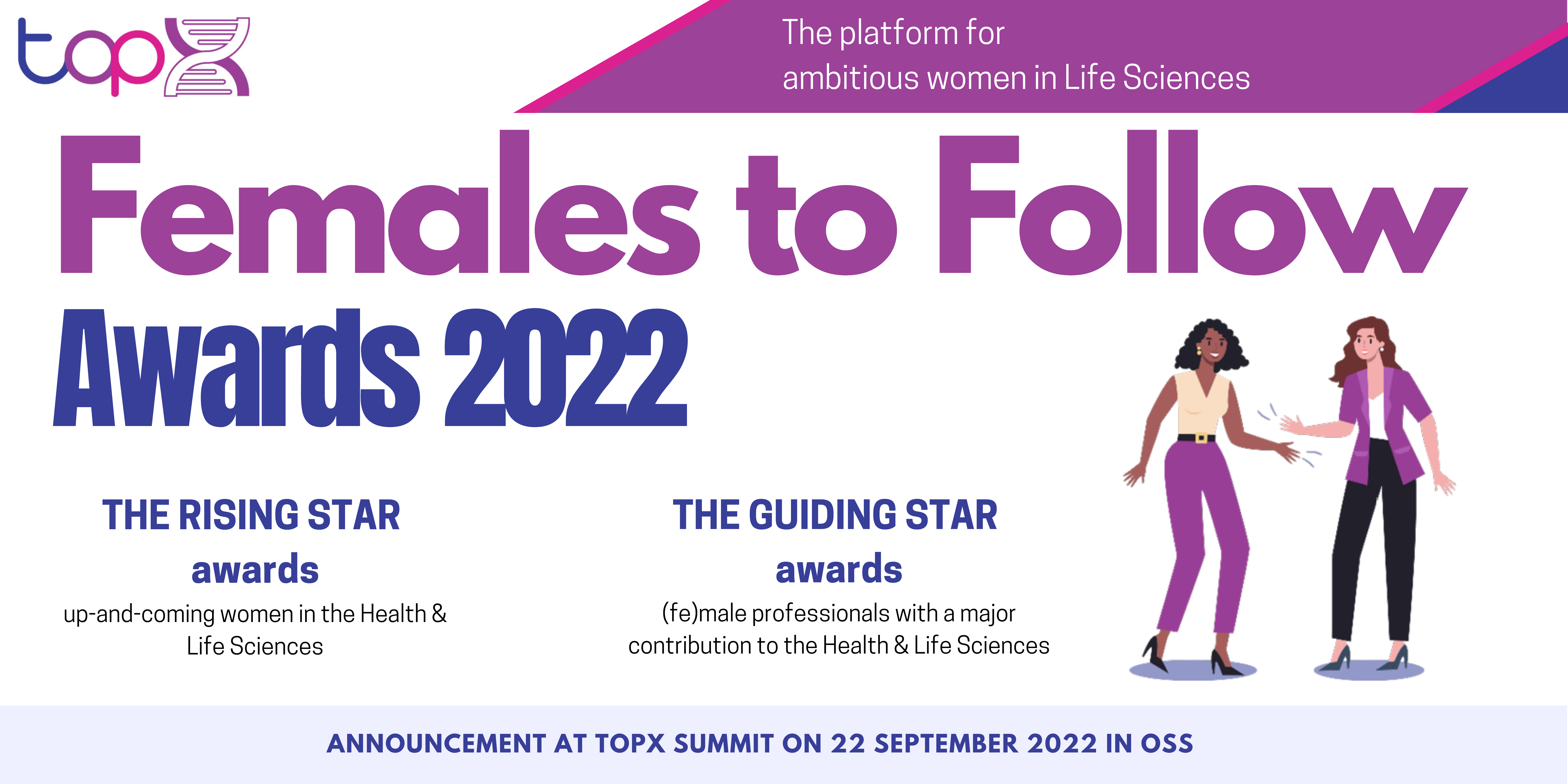 At the TOPX Summit on the 22nd of September in 2022, the winners of the TOPX Females to Follow award will be announced. With this new award, we aim to empower and honour outstanding females in the Health & Life Sciences sector and to celebrate their achievements. And by doing so to inspire the next generation of women and follow in their footsteps.