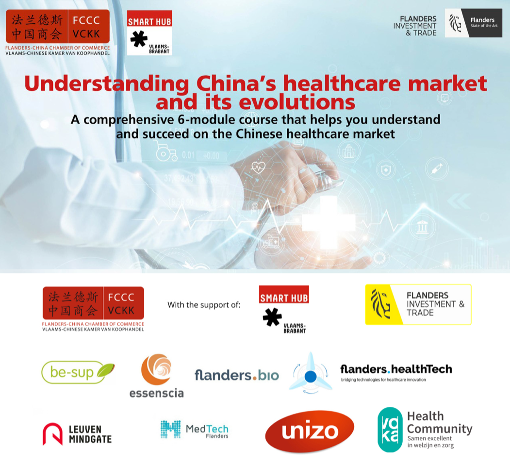 Taking into account these opportunities, the Flanders-China Chamber of Commerce will organise a 6-module course focused on helping companies to enter the Chinese market. This project is aimed at innovative companies in the pharma, biotech, medtech, medical insurance and nutrition sectors.
