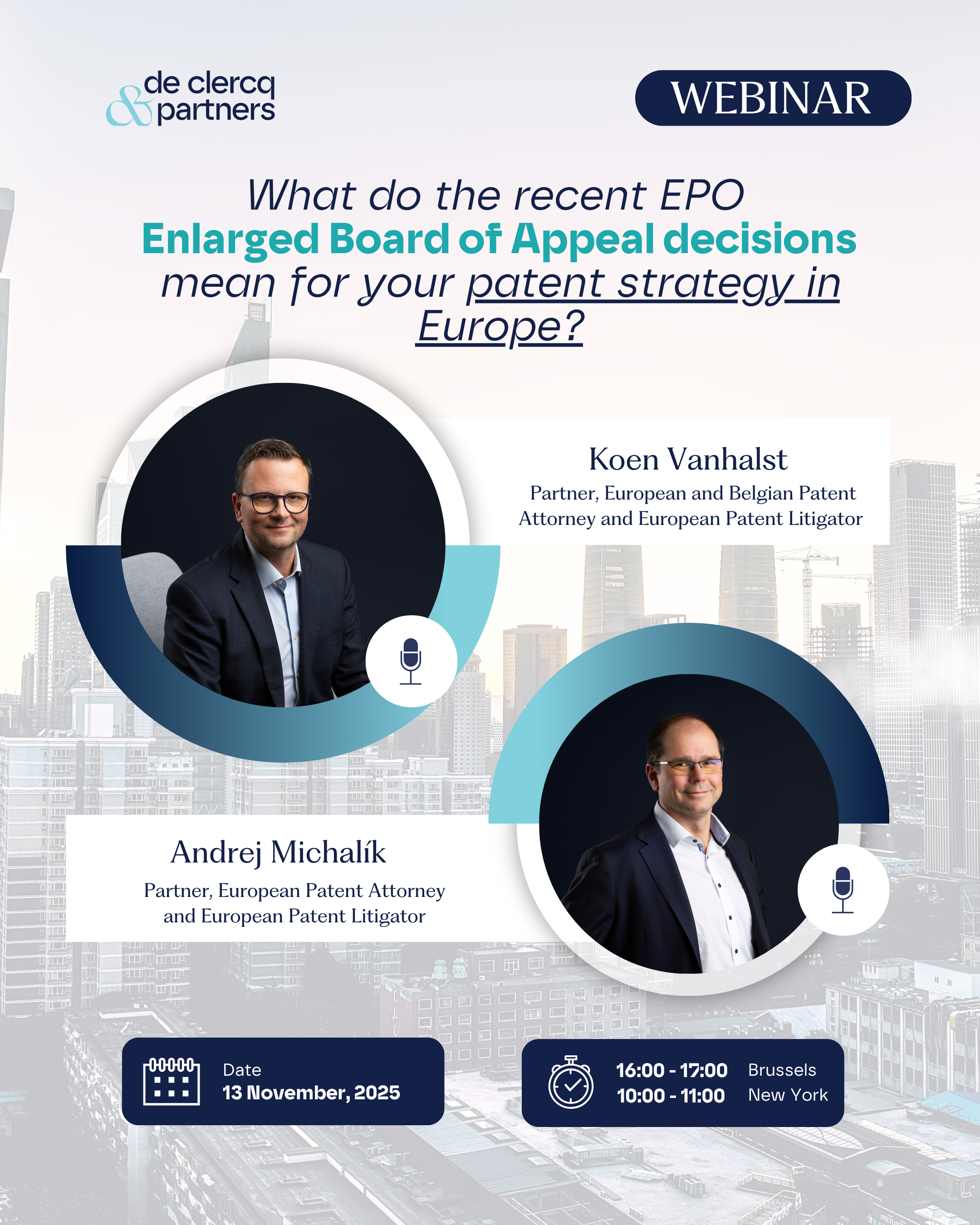 De Clercq & Partners Webinar: What do the recent EPO Enlarged Board of Appeal decisions mean for your patent strategy in Europe?