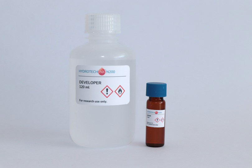 Hydrotech INX N200 has ISO-10993-5 certified biocompatibility, making it an ideal choice for various biomedical applications. The resin is bio inert, liquid, and water-soluble, enabling straightforward introduction into microfluidic chips. It is flexible and robust, which makes it perfect for organ-on-chip applications where no cell attachment is required, while still allowing for diffusion. Moreover, the biocompatibility of the material makes it ideal for the generation of combination structures composed out of multiple materials and living cells.