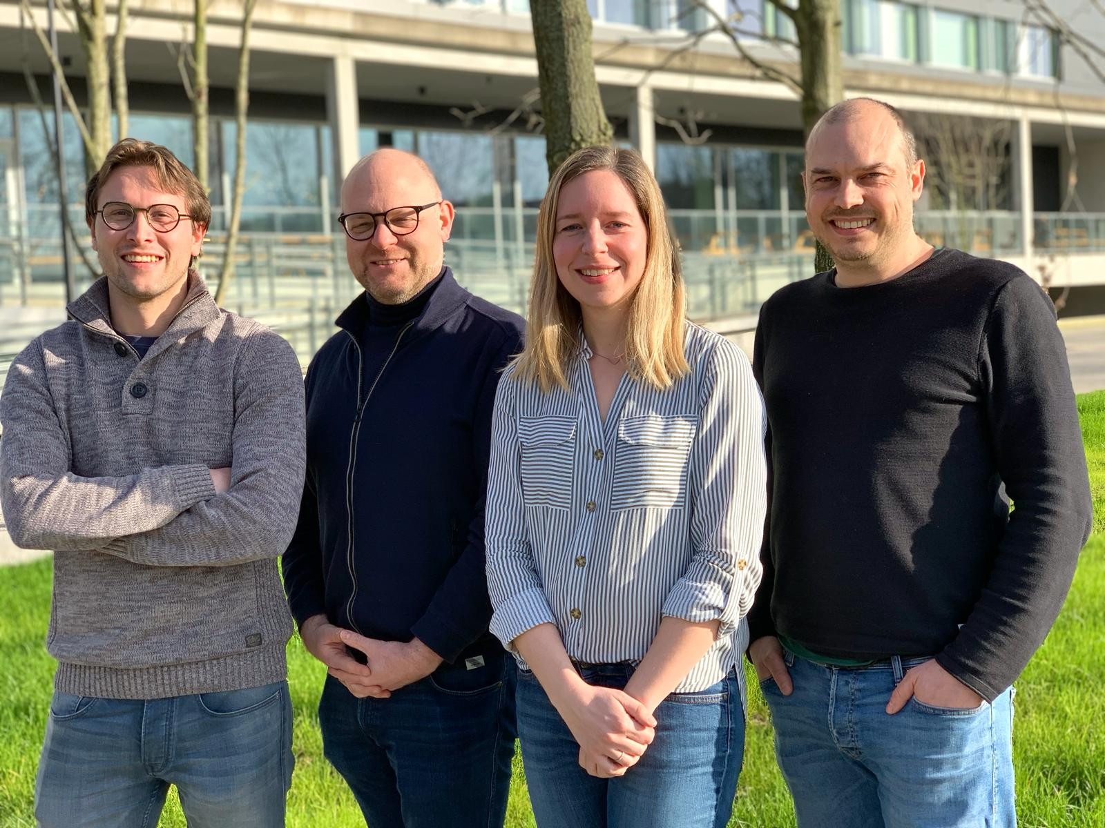 The OPENPichia team. Fltr: Robin Vanluchene, Nico Callewaert, Katrien Claes and Dries Van Herpe.