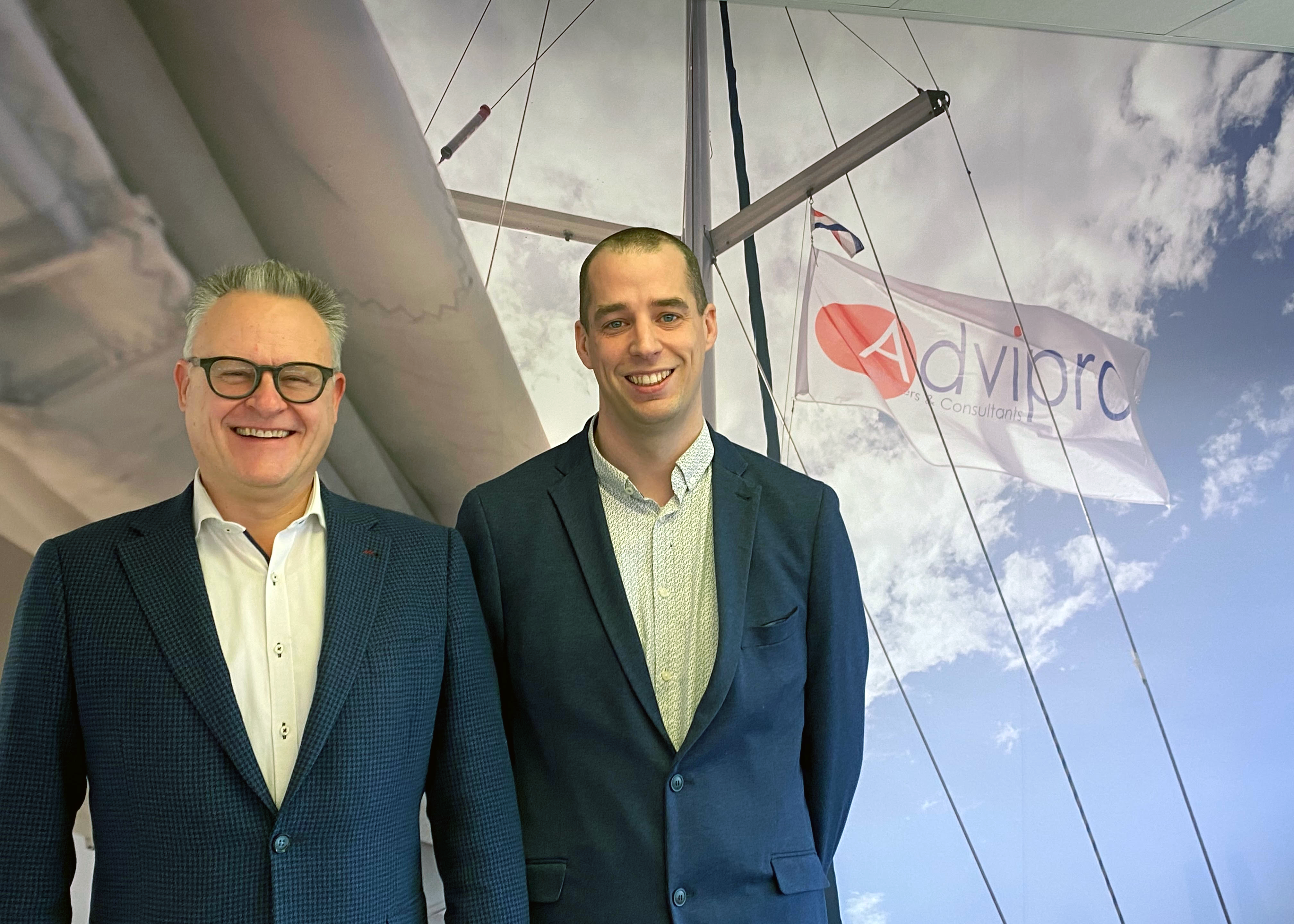 Peter Scheyltjens (52), CEO en oprichter van de Advipro Groep, geeft de fakkel door aan zijn rechterhand Toon Witvrouwen (35)
